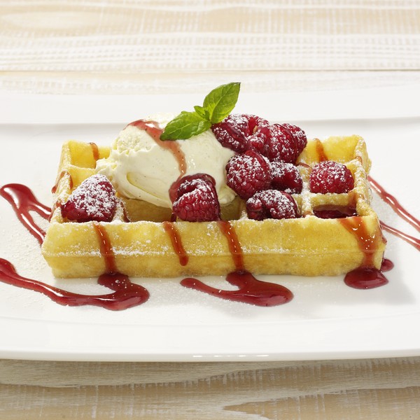 Waffel mit Himbeeren